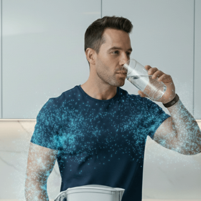 Esta tecnología apoya los procesos naturales de recuperación del cuerpo de forma más eficiente, mientras complementas el bienestar interno a través del consumo de agua estructurada.